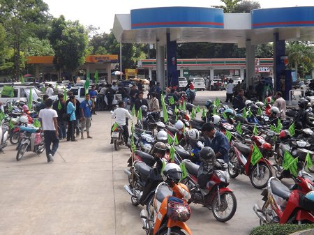 Members from the Esaan and the Southern regions travelled to Bangkok on busses, trucks and vans, while the Northern members organized a motorcycle caravan that would take three days to descend upon the capital. It was hoped that by travelling in a large group with flags and banners flying, the farmers would be able to spread their message and raise the awareness of communities along the roads leading to Bangkok.