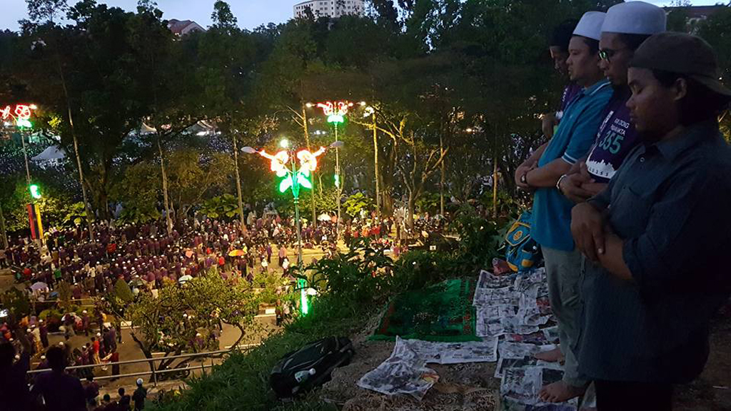 Although Himpunan 355 was clearly politically-motivated, many PAS leaders claimed it was a religious gathering. Congregational prayers, Islamic chanting, religious-themed songs and a Q&A session with popular preacher Ustaz Azhar Idrus featured. Evening Mahgrib prayers under heavy rain reflected the religious spirit of many attendees. Yet, the speech of an UMNO minister in the Prime Minister’s Department, Jamil Khir Baharom, immediately after prayers brought electoral politics back to the forefront. Many attendants rallied for the enactment of RUU 355, but they did not necessarily approve of the close relationship between UMNO and PAS.