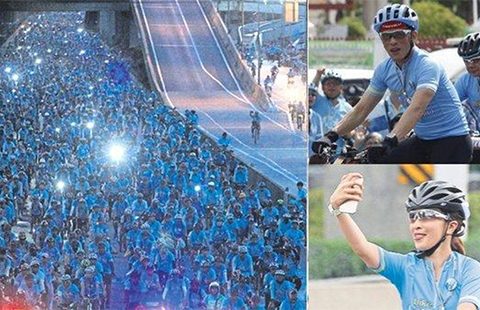 As the sea of cyclists approached, I saw a beautiful woman at the front take a selfie. That’s “Princess Bajrakitiyabha!” a passenger exclaimed. As I am single, I quickly stalked her on Google as the blue tide whooshed past.