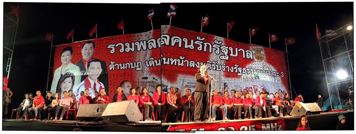 On Sunday, 18 November 2012, about 40,000 Red Shirts from central Thailand gathered at a United Front for Democracy against Dictatorship (UDD) stage in Bang Pla, Samut Prakan, close to Bangkok. With all the buzz over Obama’s visit and Pitak Siam’s looming rally, it appears to have escaped the attention of most media that this, together with the recent UDD rally in Udon Thani have been by the by far biggest Red Shirt gatherings in more than a year.