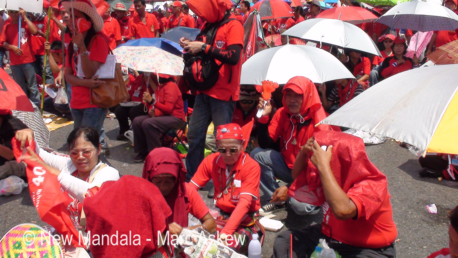 Most commentators appear to be trying to figure out the end game of the next few day’s red shirt rally in Bangkok and speculating about the possibility that violence will break out, but there are few who pay much attention to ordinary red shirt supporters. This has been a persistent pattern among both journalists and academics, though it is refreshing to note that some recent Bangkok Post reports include some references to ordinary red shirt people and their motivation in traveling to Bangkok for the demonstration of 14 March 2010, in marked contrast to its reporting a year ago. Nonetheless, the main focus of the [primarily state-run] TV media has been the prospect of violence, as with the local Thai and English-language press. I offer this descriptive cameo account simply to put some flesh on the bones of the leeched accounts of the red shirts and to give readers a sense of immediacy in the current events as they are unfolding. It is made as preliminary to what I’m sure will be a compelling and dynamic portrait of evolving events from the intrepid Nick Nostitz, who is pounding these Bangkok streets as I write, having myself returned from the blazing heat of the rally site to the comfort of my air-conditioned room in Sukhumvit.
