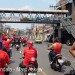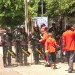 The photos here show scenes encountered from the late morning of today, 14 March, from the time I left the soi in a small group of motorcycles with Daeng and her friends, heading towards the UDD rally site at the Phan Fa bridge at Rajdamnoen Avenue. As soon as we left the mouth of the soi we entered Sukhumvit road, and found ourselves in the midst of a convoy of trucks and motorcycles carrying red shirt supporters towards the rally site. What was remarkable about this were the numerous enthusiastic bystanders along Sukhumvit, Ploenchit and Rama I roads who shouted greetings to the cavalcade. I particularly recall a woman flower vendor outside the Erawan Brahman shrine, who smilingly threw red roses into the pick up trucks as they passed. At the rally sight, despite the intense heat of the day, the atmosphere was festive. At the end of Lan Luang road, red shirt guards, donning black, manned barricades, handing water to those arriving. Each new arriving group was cheered enthusiastically as they entered this and other points, like an assembling army. In a soi beyond the crowded Phan Fa bridge where the central stage was erected, a small unit of troops clad in riot gear stood in a line looking like extras from a Star Wars movie. They were trying hard to look stern in the face of red shirts who were offering them drinks and kind words.