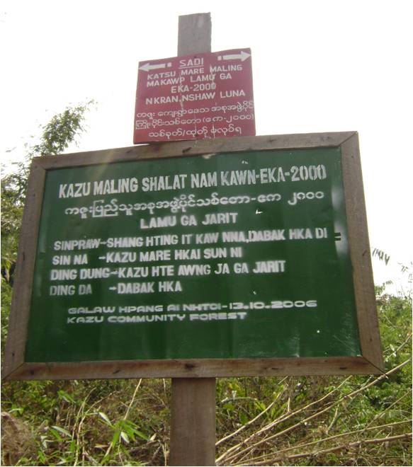 Fig 8: Officially demarcated community forest sign in Kachin State (Anonymous Kachin researcher).