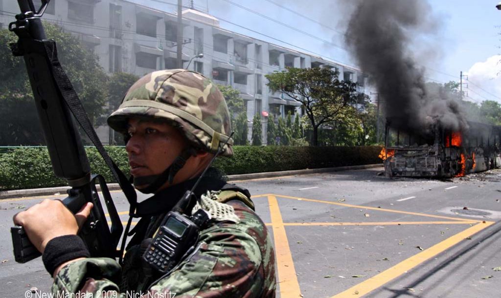 So, “political reform before election” appears to be a fait accompli, at least as long as military force and its threat persist as effective tools of political control. A regime of compulsory silence now governs the country. And for all the clamor and talk of its possibility, “civil war” remains unlikely because only one side is fully armed. The lessons of May 2010 reverberate loudly to coup opponents –wrist rockets and bottle bombs are risky bets against the firepower of a modern military. Only an unexpected and dramatic split within the ranks of the military would create the possibility of civil war at this point.
