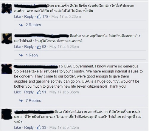 The vast majority of social media commentators appeared to support the Thai government’s initial decision not to let the Rohingya enter Thailand. The most common arguments were that Thailand already has enough problems of its own and that the refugees would be a financial burden. Many social media users also argued that the refugee crisis does not concern Thailand and therefore the country has no responsibility to assist them.