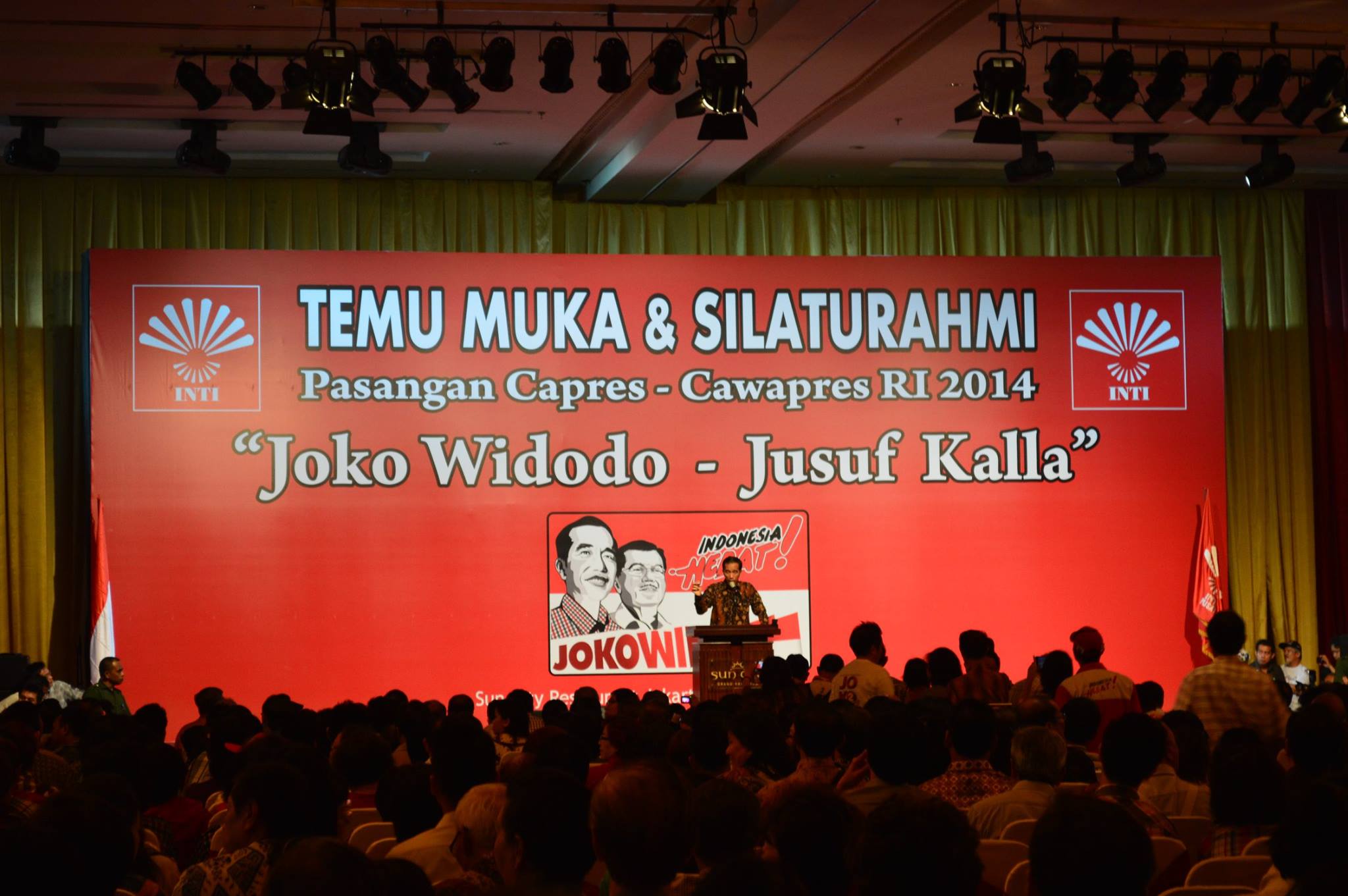 Presidential hopeful Jokowi speaking to a large audience from the Chinese Indonesian Association (INTI) on 26 June 2014 in Jakarta. Photo credit: Charlotte Setijadi
