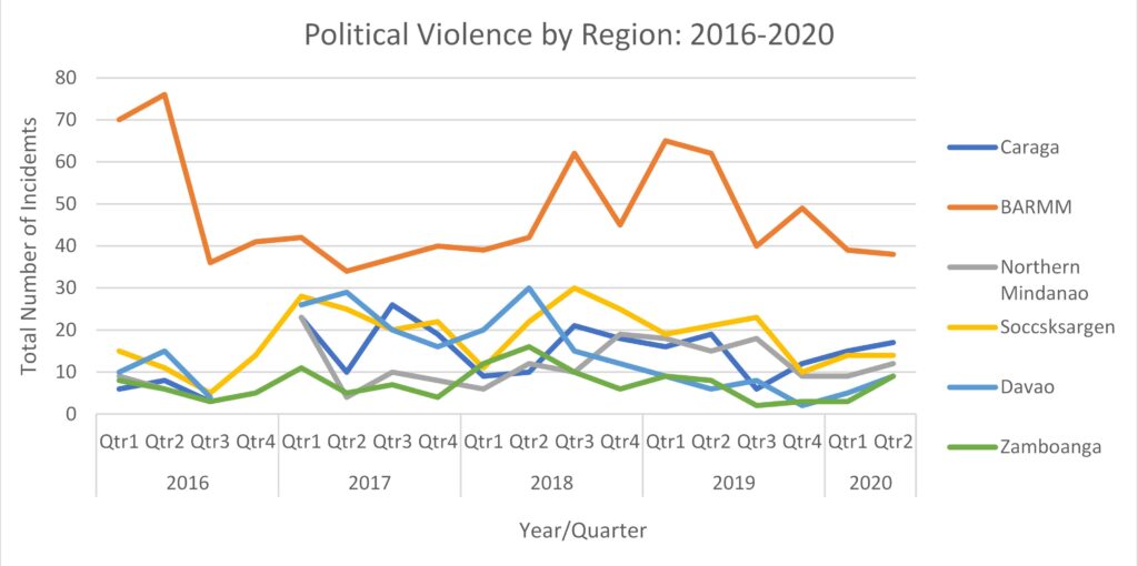 Compared to the previous four years, the Southern Philippines as a whole experienced significantly less violence in 2020 in terms of both the number of violent incidents and the number of casualties resulting from those incidents.