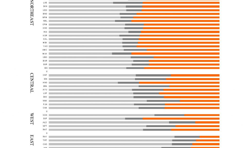 This second graphic shows the vote by province, roughly arranged from north to south. The orange bit is the valid vote, the dark grey bit is the protest vote (spoiled ballots plus “no vote” box) and the light grey bit shows those who did not show up to vote.