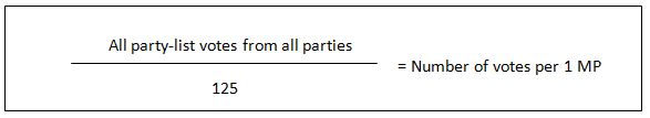 - Divide the total number of votes 125 and you will get the figure for the number of votes required per party-list MP;