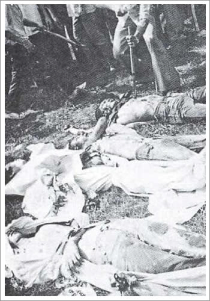 - The identities of the bodies are not clear. Nor is it clear whether the bodies are any of the other people described in this article. It is also unclear whether all the bodies in the photo had wood hammered into them.