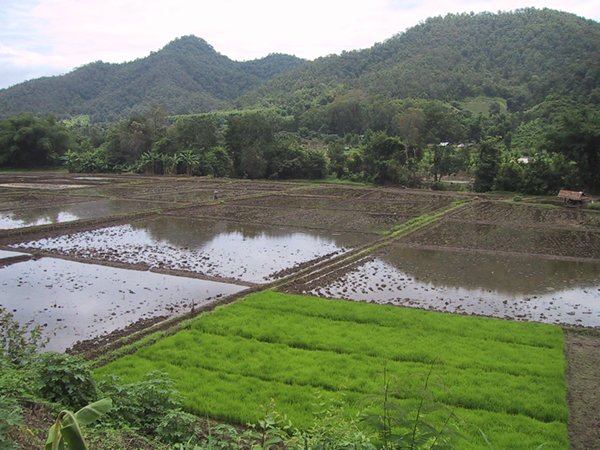 This is a blog from the field, from a lowland northern Thai village. The rice growing season is getting under way. The seedling beds have been planted; the fields have been ploughed and the bunds dividing the fields have been repaired. Over the next few days teams of exchange labourers will start to descend on the fields to uproot the seedlings, bundle them up, trim them and then plant them into the flooded fields.