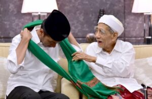 Joko_Widodo_was_given_a_turban_by_Maimun_Zubair