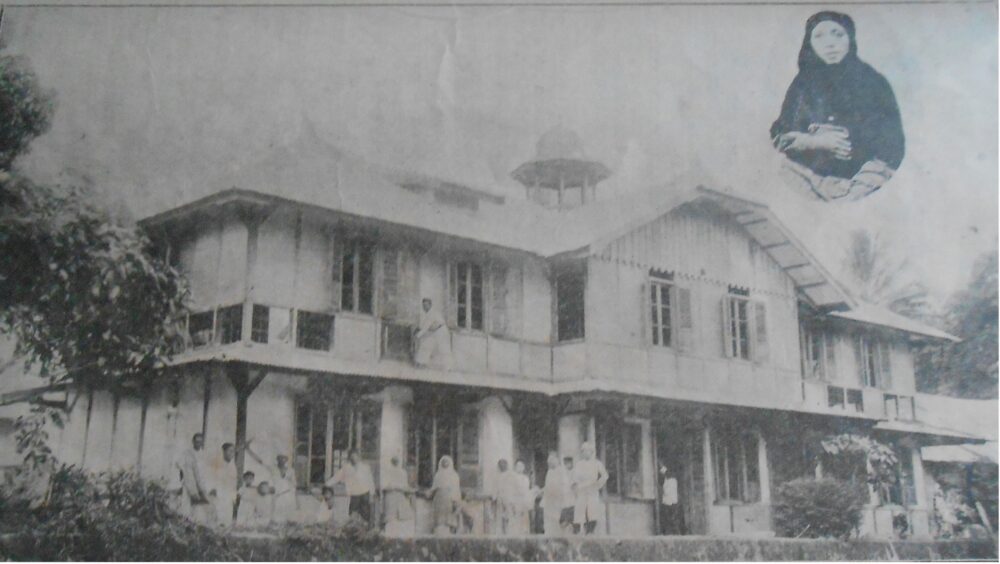The Dinijjah Poeteri school building with a portrait of Rahmah el Joenoessijah. Source: Boekoe Peringatan 15 Tahoen “Dinijjah School Poeteri” Padang Pandjang (Padang Panjang 1938). Reproduced with kind permission of Perguruan Diniyyah Puteri.