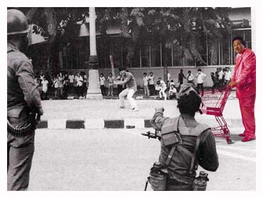 Manit Sriwanichpoom, Thailand’s most internationally established photographer, will talk about the birth and development of his best known series, ‘Pink Man’, the fat Asian man in the obscene pink satin suit who pushes a matching obscene pink shopping cart. How did an idea for one street performance satirizing Thai contemporary aspirations become an indelible crossing culture mascot of consumerism? He will also share his thoughts on other critical and controversial work such as ‘This Bloodless War’, a series of black & white photographs reconstructed from Vietnam war news photos; and ‘In-Your-face’, a series of artist portraits which has suffered from odd forms of censorship, most recently when a shipping company refused to send the print to an exhibition in Germany, due to concerns about its obscenity.