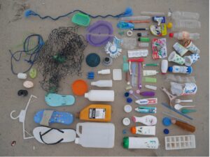 AN ARRANGEMENT OF ASSORTED PLASTIC DISCARDS FOUND ON A BEACH IN SUMBAWA (INDONESIA) (PHOTO- AUTHOR)