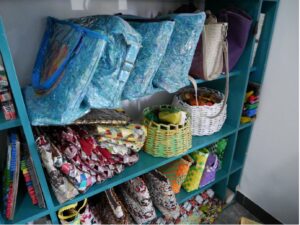Eco-fashion products on display at one waste bank in Indonesia (Photo- author)