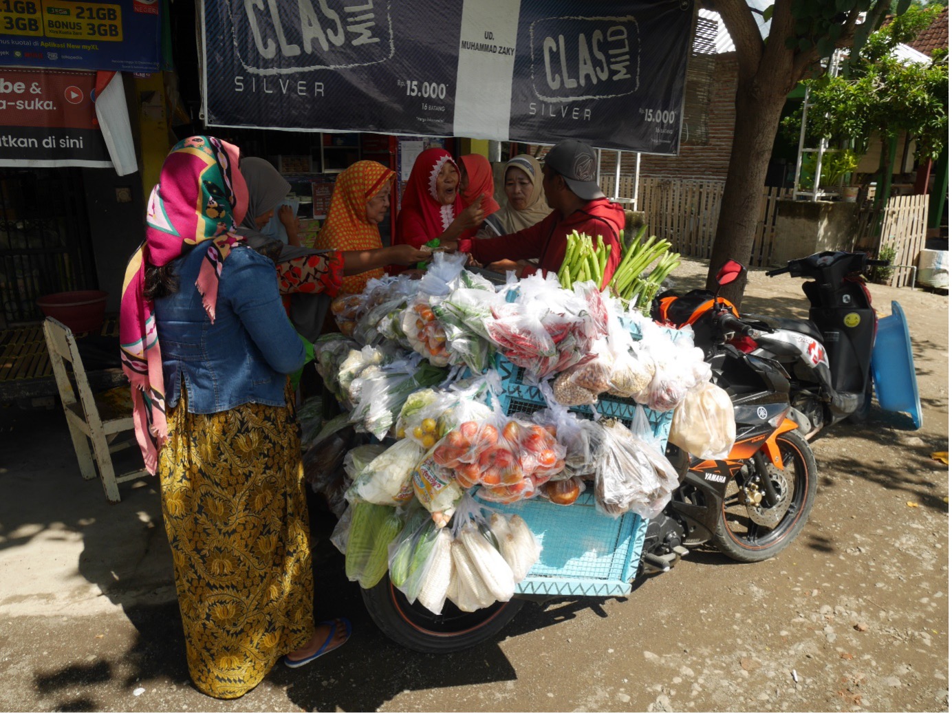 Female villagers gather around a door-to-door salesman in Sumbawa (Photo: author)