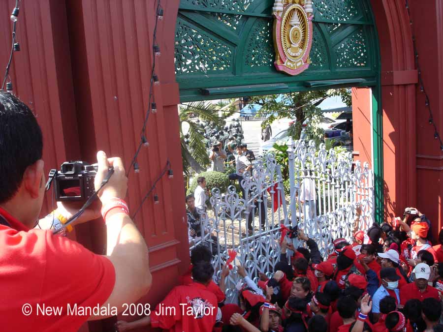 Demonstrators from all walks of life including a few buses from the north and the northeast reserved a special vocal resentment for Kasit. The many villagers that I talked to expressed openly a bitter disappointment and profound sadness in what they see as the biased political leanings of the highest order in society. Most traditional Red supporters in the street were too fearful according to many informants to turn up at Parliament given the media warnings of police and army intervention. Reds were also, in the main, clearly pro-Thaksin and considered the democratisation processes started by him including the empowerment of villagers in the late 1990s to have been irreversibly damaged by the turn of events in late 2006 and the fascist-inclined politics coming out of the so-called “Democrat” Party and its traditional elite supporters. Anti-Thaksin media run by Sondhi Lim and his mates especially the Manager and the English-language print media continues to give out false media and consistently lampoon Thaksin along lines of the Nazi campaign to discredit the Jews in the 1930s.