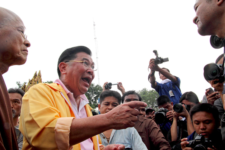 The general was quite agitated, and when he was told by an officer talking with Samana Pothirak to wait for higher ranked officers, he climbed over the barricade, looking himself for a higher ranked officer, meeting one, and was told again to wait as some officers were on the way from the Metropolitan Police headquarters.