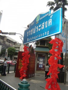 red ribbons at ratchaprasong