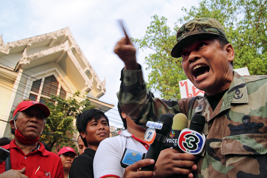 The following day, during the Red Shirt Rally at the Army headquarters, the furious Sae Daeng answered the media with harsh insults, and accused the officers who oppose him of violations of their own. He criticised them for having allowed the military coup of 2006 and having not acted against the People’s Alliance for Democracy during 2008.