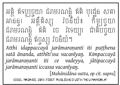 [4]. A variation of no significance: I am retaining the Khmer edition’s double-p spelling (vs. viññāṇapaccayā).